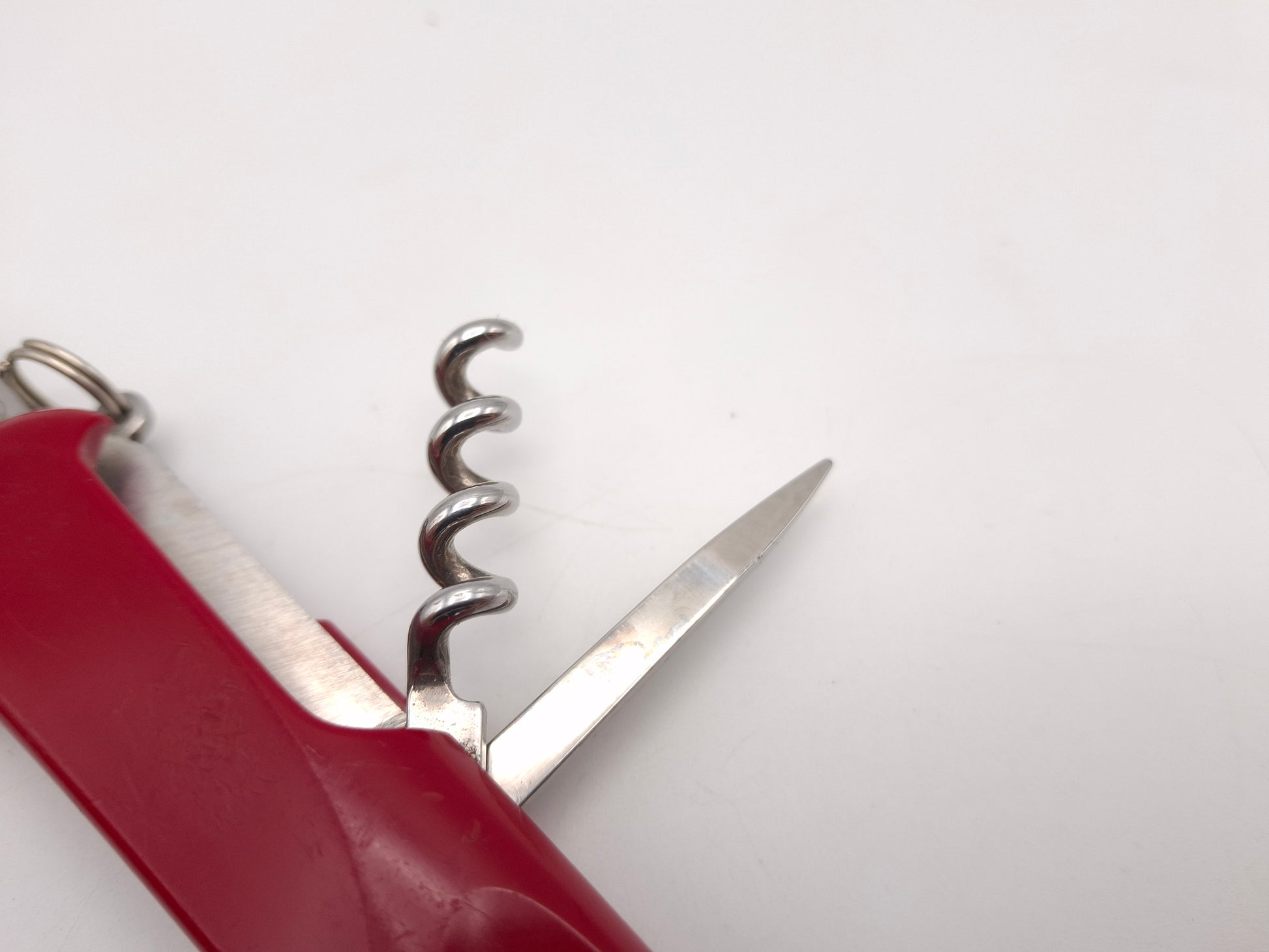 Deze specifieke uitvoering van de Wenger Evolution 10 wijkt af van het standaardmodel door de nagelvijl te vervangen voor een kleine schroevendraaier. De ergonomische schalen bieden de kenmerkende grip van de Evolution-lijn. Dit exemplaar is geproduceerd als relatiegeschenk voor het bedrijf "Derendinger".